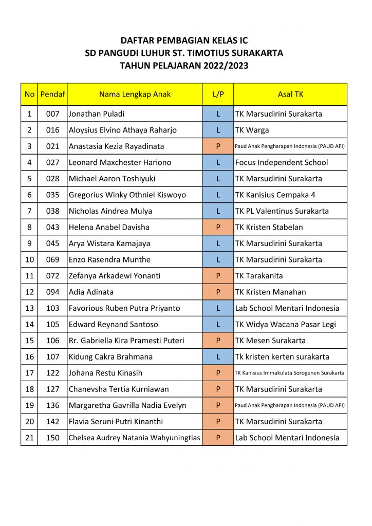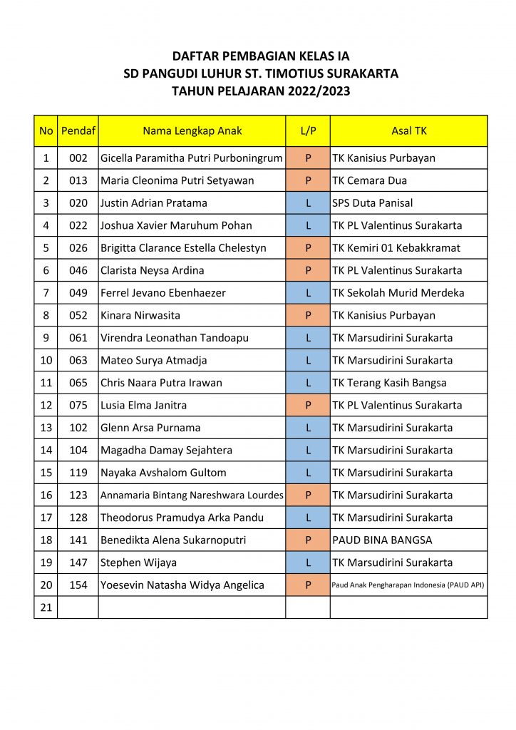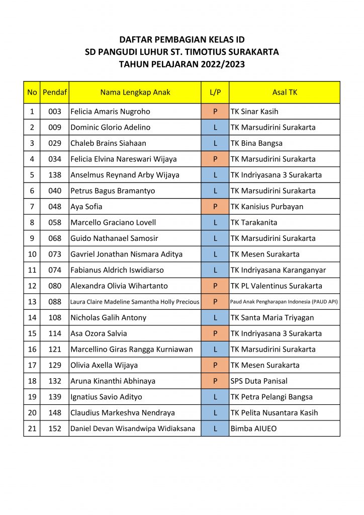 Pembagian Kelas Siswa Baru SD Pangudi Luhur Santo Timotius Surakarta Tahun Pelajaran 2022/2023 04/07/2022 admin sd PL - 1 Uncategorized